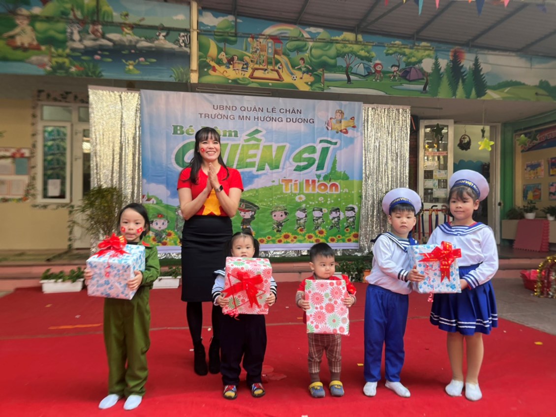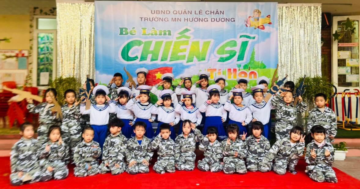 Nhằm giúp trẻ hiểu hơn về ý nghĩa của ngày Thành lập quân đội nhân dân Việt Nam 22/12, trường Mầm non Hướng Dương đã tổ chức sân chơi " Bé là chiến sĩ tí hon 2022". Thông qua sân chơi trẻ được phát huy, rèn luyện sức khỏe, sự khéo léo, dẻo dai và tinh thần đồng đội thêm yêu mến và hiểu hơn về các chú bộ đội. Thiết thực kỷ niệm ngày thành lập Quân đội nhân dân Việt Nam 22/12, ngày Quốc Phòng toàn dân. Trẻ được diễu hành dưới tiếng nhạc hùng ca hoành tráng, các con bước đi với những bước chân khỏe mạnh, thể hiện khí thế hào hùng với những gương mặt tươi vui, rạng rỡ như cô, chú bộ độ thực thụ.